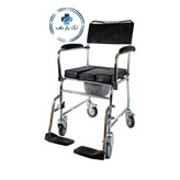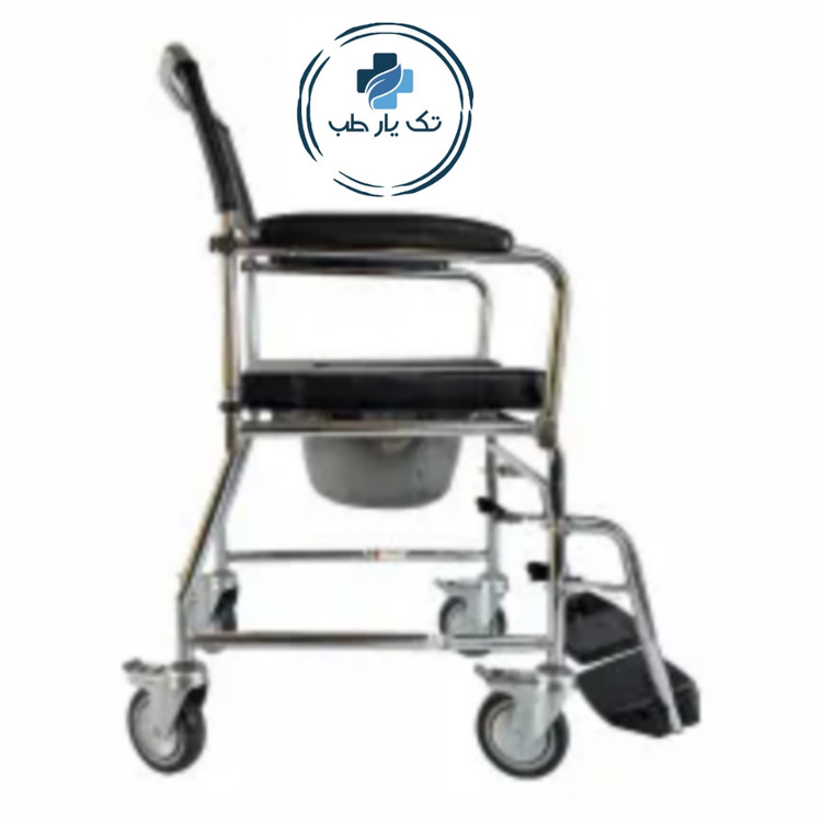 این ویلچر دارای چهار چرخ کوچک است و هر چرخ به قفل مجهز شده است تا در حمام لیز نخورد و حرکت نکند. همچنین در قسمت نشیمنگاه این ویلچر یک کمربند ایمنی قرار گرفته شده است تا بدن بیمار را مهار کند.