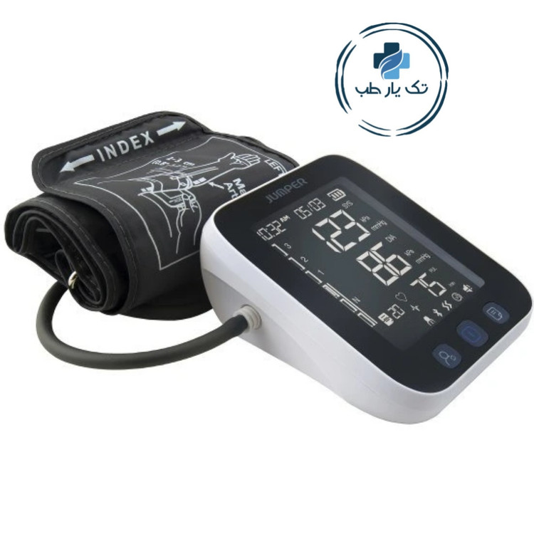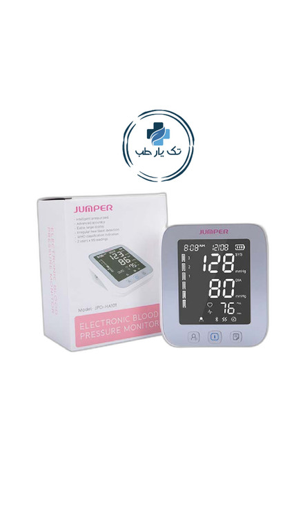 فشارسنج دیجیتال جامپر مدل HA-101، این فشارسنج بسیار با دقت و کیفیت مناسبی دارد و برای کسانی که سواد خواندن ندارند به دلیل سخنگو به زبان فارسی، کاربردی می باشد. کاف دور بازو برای کسانی که اندازه بازویشان 22 الی 36 سانتی متر بوده مناسب هست. دو کاربر میتوانند نتایج فشار خود را در آن ذخیره کنند. صفحه نمایش این نوع فشارسنج بزرگ و با حروف خوانا درج می شود. امکان استفاده با باتری و اداپتور را دارد.
